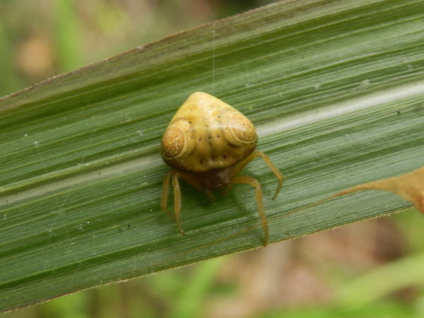 コガネグモの仲間は、いろいろな形の網を張って獲物をとる。